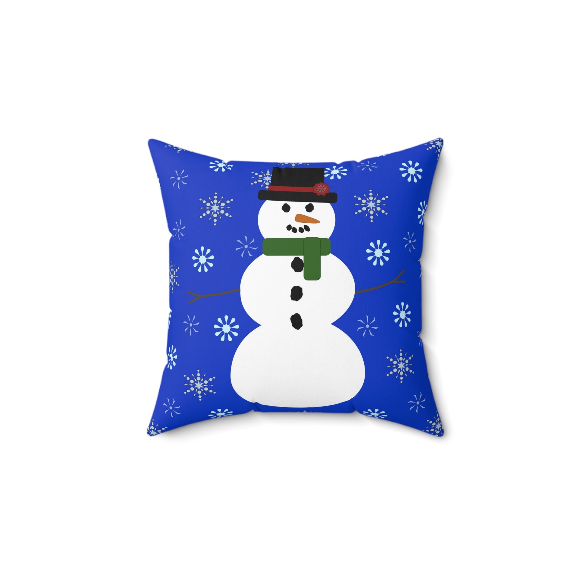 Elevate your home decor this winter season with my delightful indoor throw pillows, available in four sizes: 14 x 14, 16 x 16, 18 x 18, and 20 x 20 inches. These cozy pillows feature a 100% polyester cover and a plush polyester pillow insert, ensuring both comfort and durability. The eye-catching design showcases a charming snowman surrounded by whimsical snowflakes on one side, complemented by a solid medium blue back to harmonize beautifully with the front.