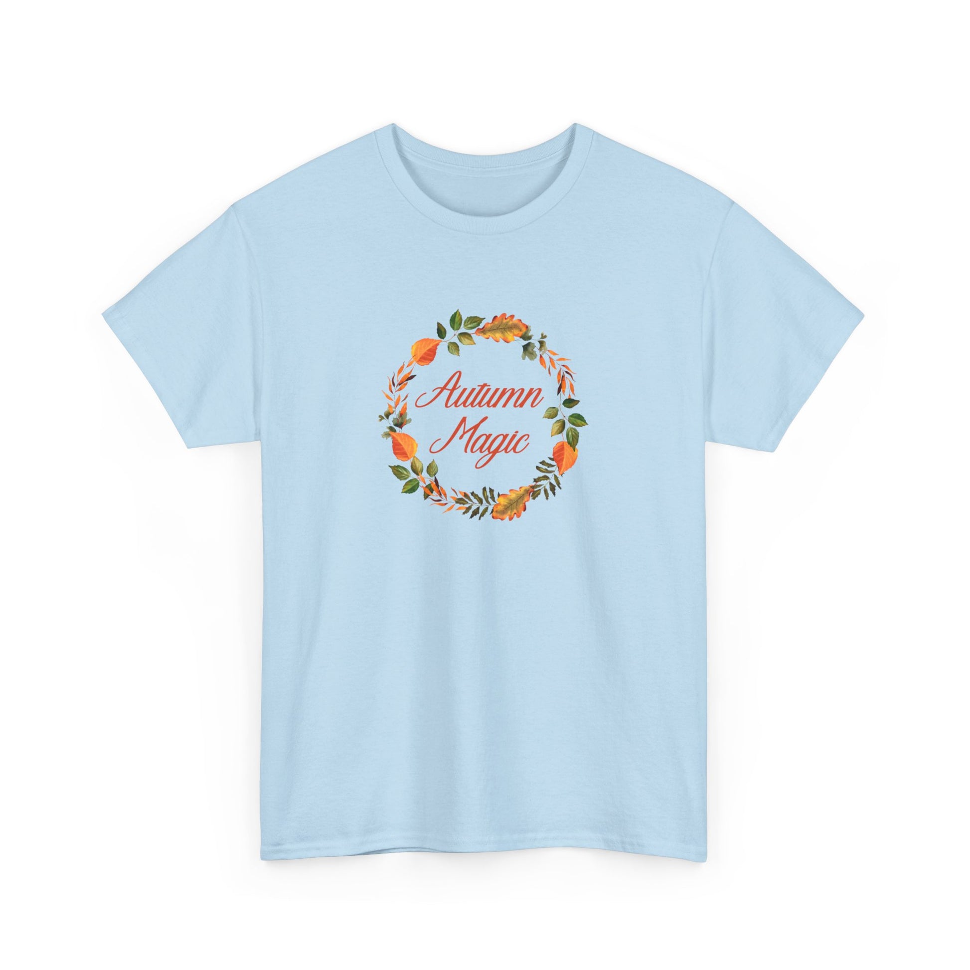 Embrace the beauty of the season with my "Autumn Magic" unisex t-shirt, a perfect blend of comfort and style for everyone! This soft, high-quality tee features a stunning custom design showcasing a vibrant wreath of autumn-colored leaves that captures the essence of fall.